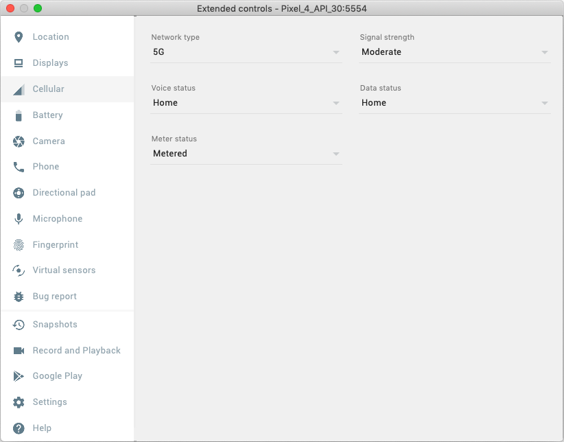 functionality was added in Emulator version 30.0.22. Selecting the 5G network