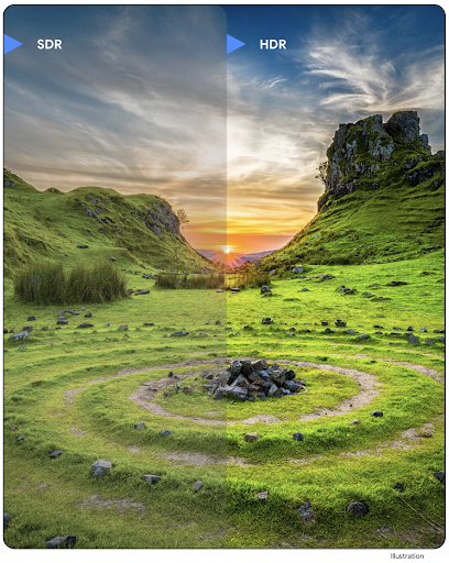 Android 14 adds support for High Dynamic Range (HDR) images that retain more of the information from the sensor when taking a photo, which enables vibrant colors and greater contrast. Android uses the Ultra HDR format, which is fully backward compatible with JPEG images, allowing apps to seamlessly interoperate with HDR images, displaying them in Standard Dynamic Range (SDR) as needed.