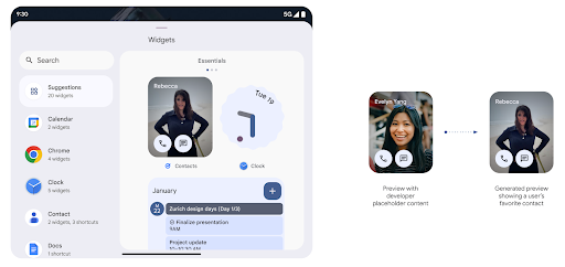 • Providers that show static information in previews or quick-action widgets that don't display any data. These providers can set previews once, when the app first launches. Examples of this type of widget include a drive quick actions widget or chrome shortcuts widget.