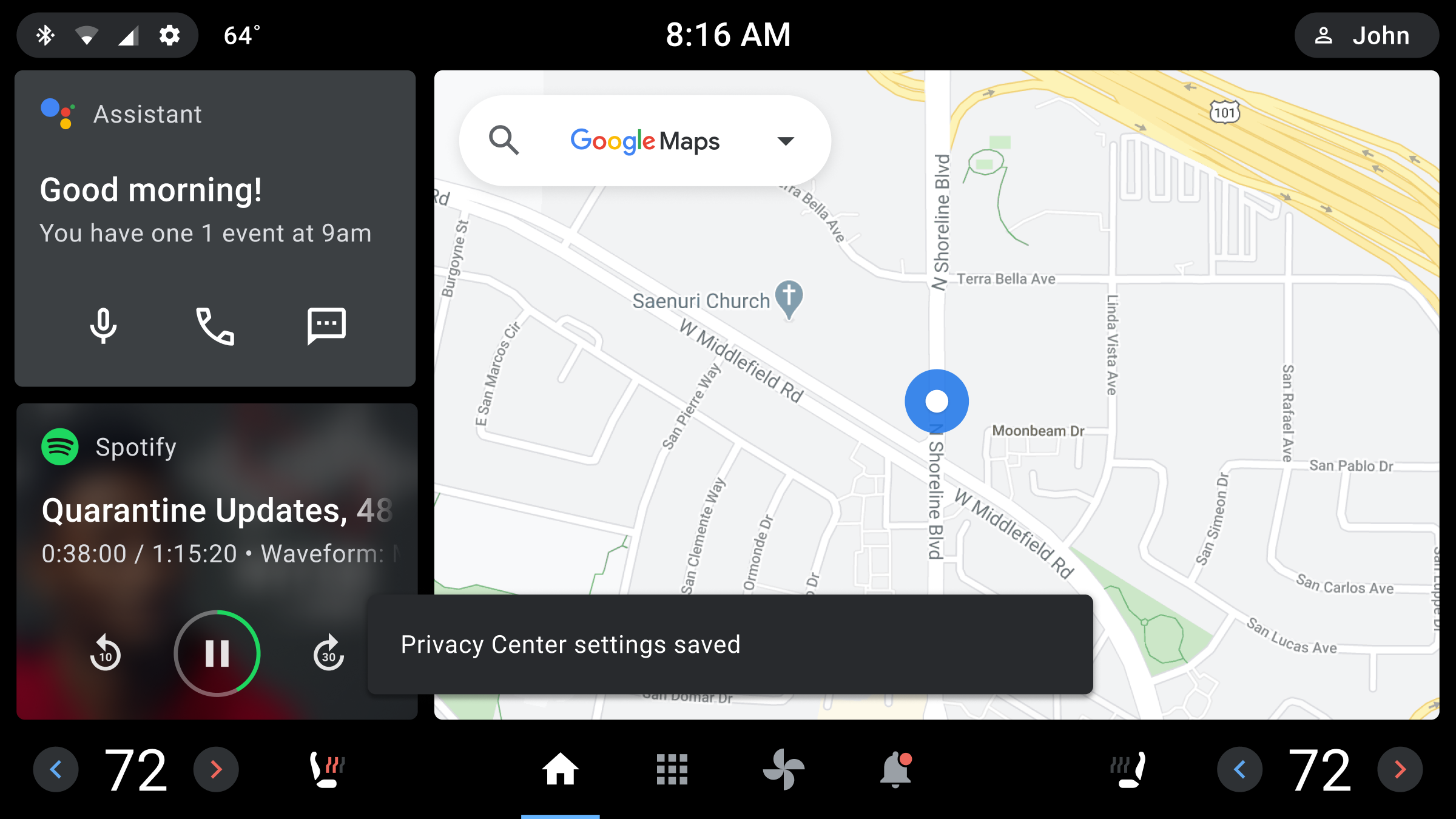 Toast placement (near bottom of the screen)