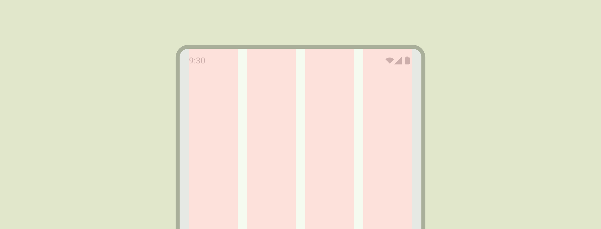 Building with an underlying grid helps create consistent spacing and alignment across your UI. Android UI utilizes an 8 dp grid for layout, components, and spacing.