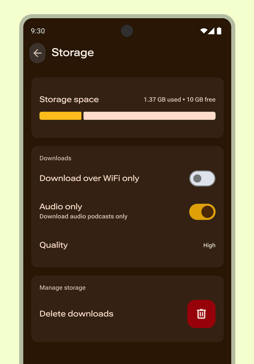 Choose which settings should be determined in-app and eliminate preferences better decided in device settings or handled by a service. For example, avoid overriding system themes unless extending with greater customization for your app experience.