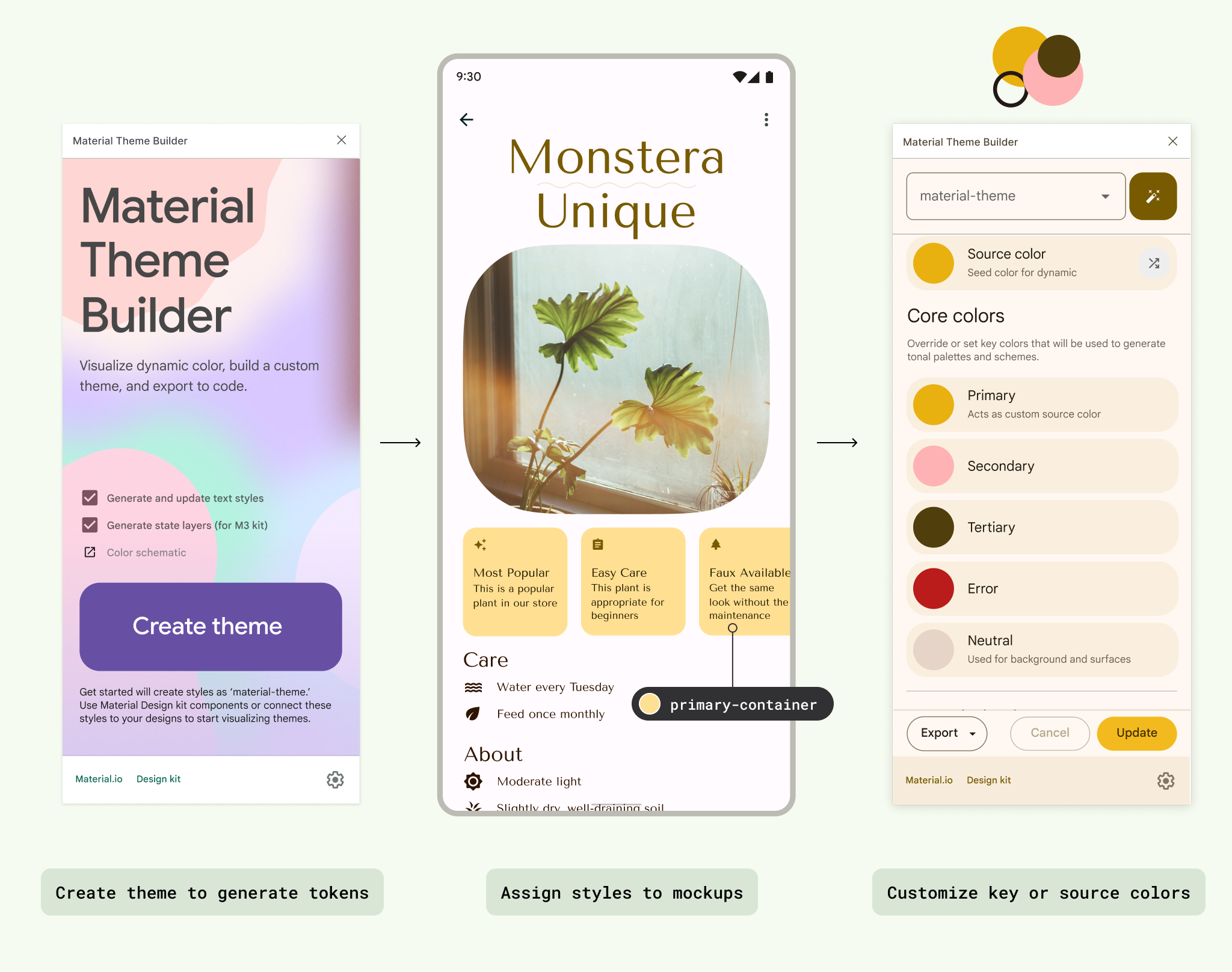 MTB lets you visualize dynamic color, generate Material design tokens, and customize your color schemes.