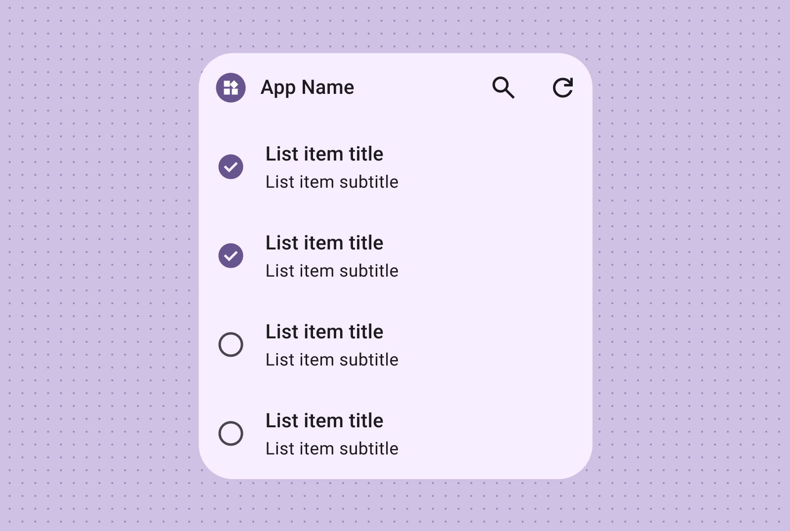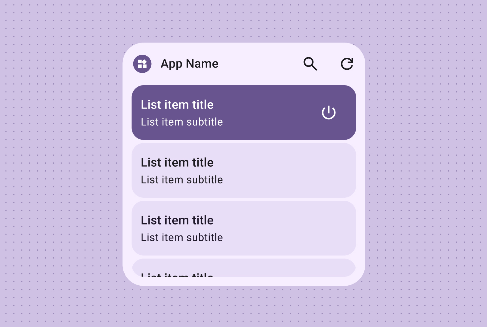 Use list layouts to organize multiple items in a clear, scannable format. This is ideal for news headlines, to-do lists or messages. Organize content into a structured, easily scannable list. Choose between containerized or containerless presentation based on your content needs.