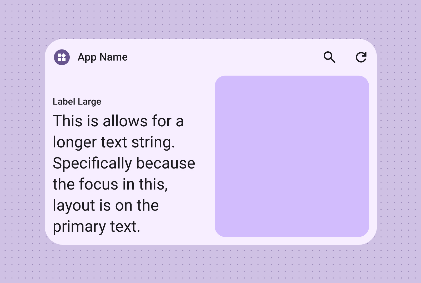 Ideal for titles, status updates, short descriptions, or any scenario where a single line of text effectively conveys the message. Refer to the Canonical layout sample for guidance on dynamically scaling text content based on widget size.