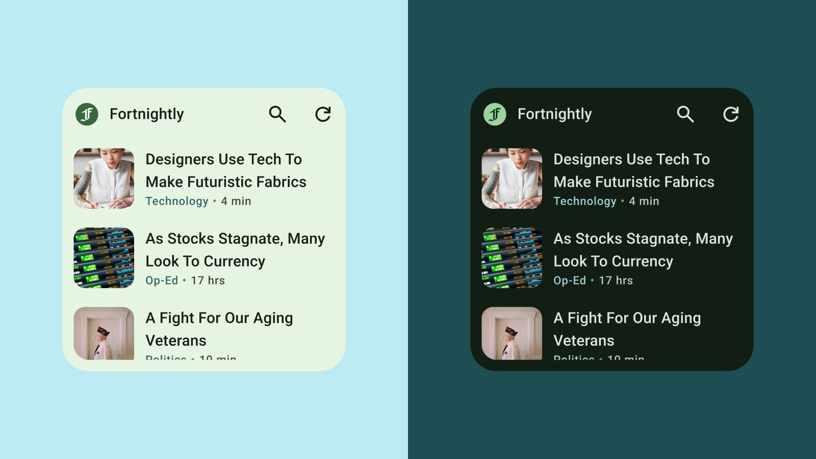 Although widgets use system fonts, you can still add expressive details with dramatic typescales: get bolder with headlines, labels, and data.