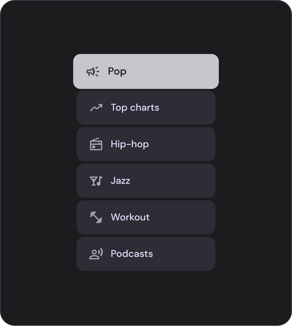- One-line list: A single line to communicate each item. This simple design ensures each item is clearly distinct from the other.