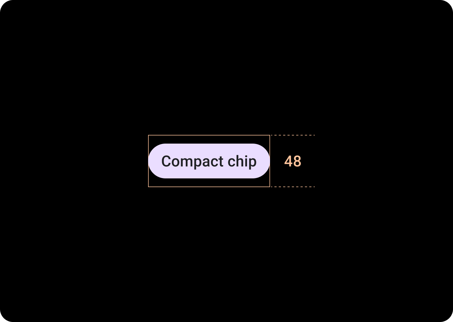 Compact chips have a slot for an icon and a slot for a single line text label. Compact chips have a tappable area with a height of 48 dp.