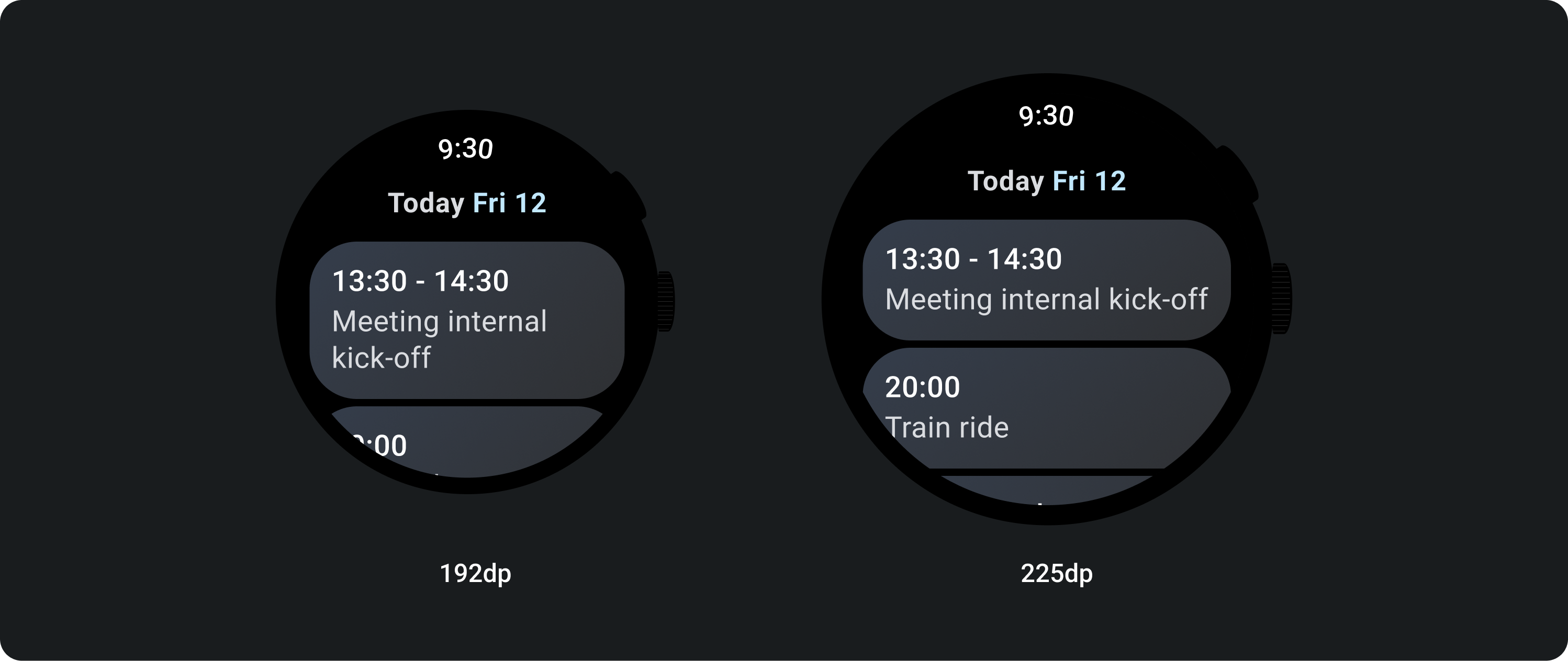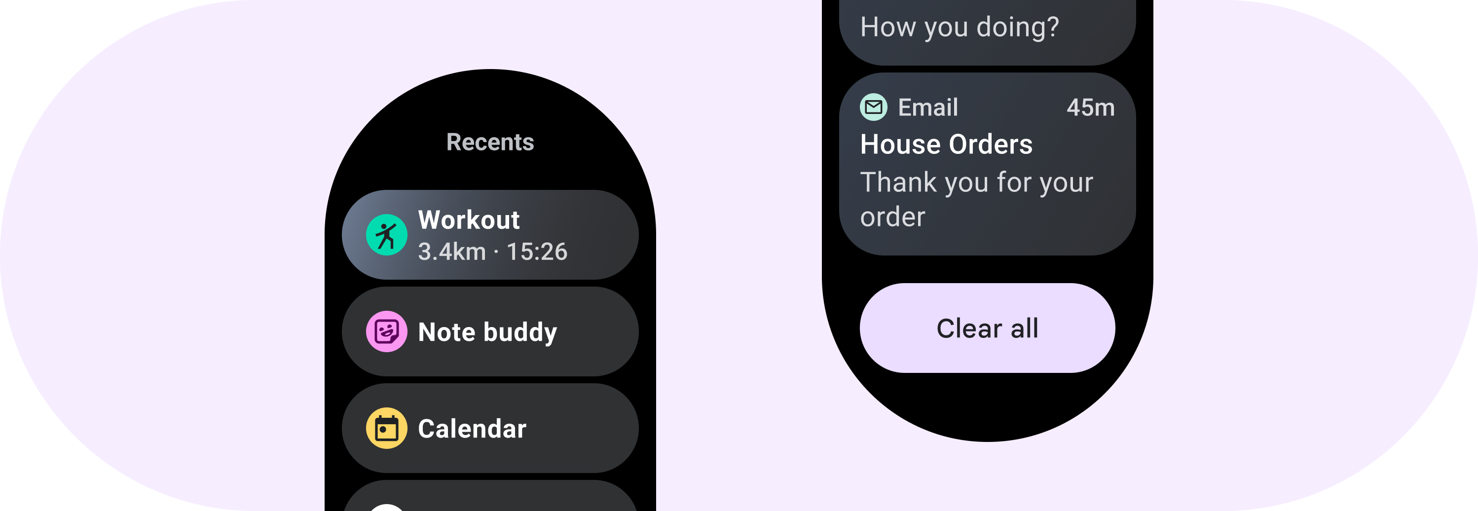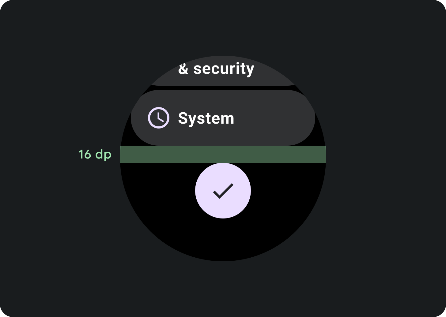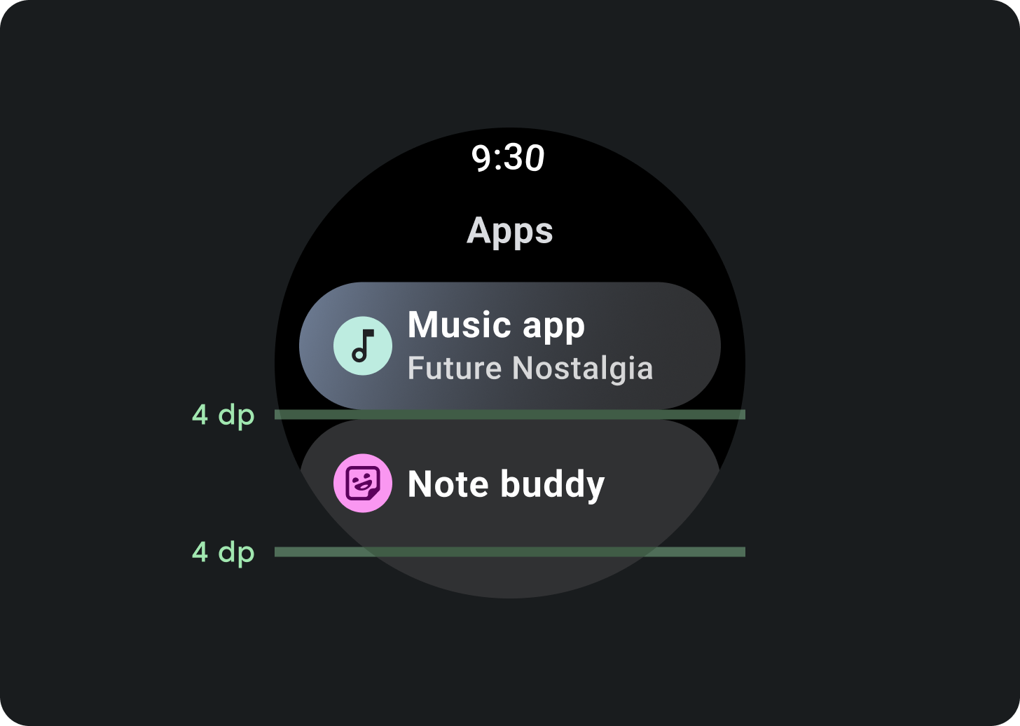 Lists can contain items of fixed or variable height. List content should have margin enough to accommodate for circular screens.