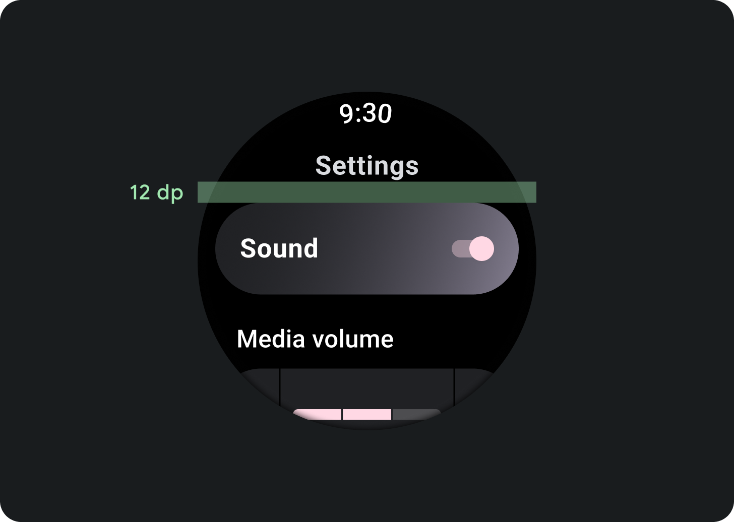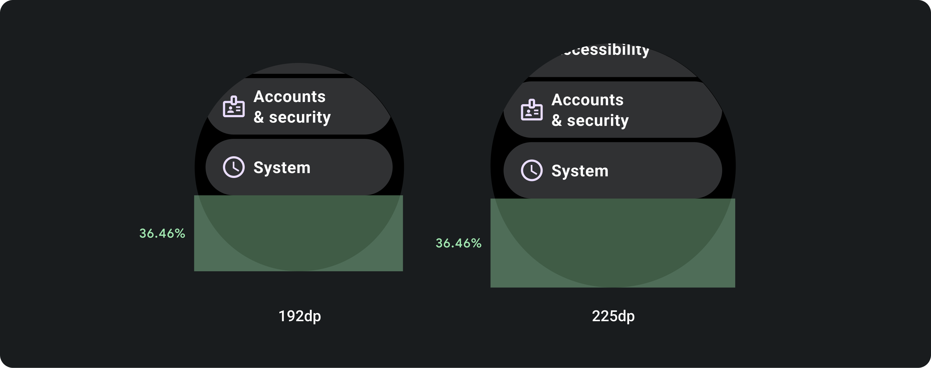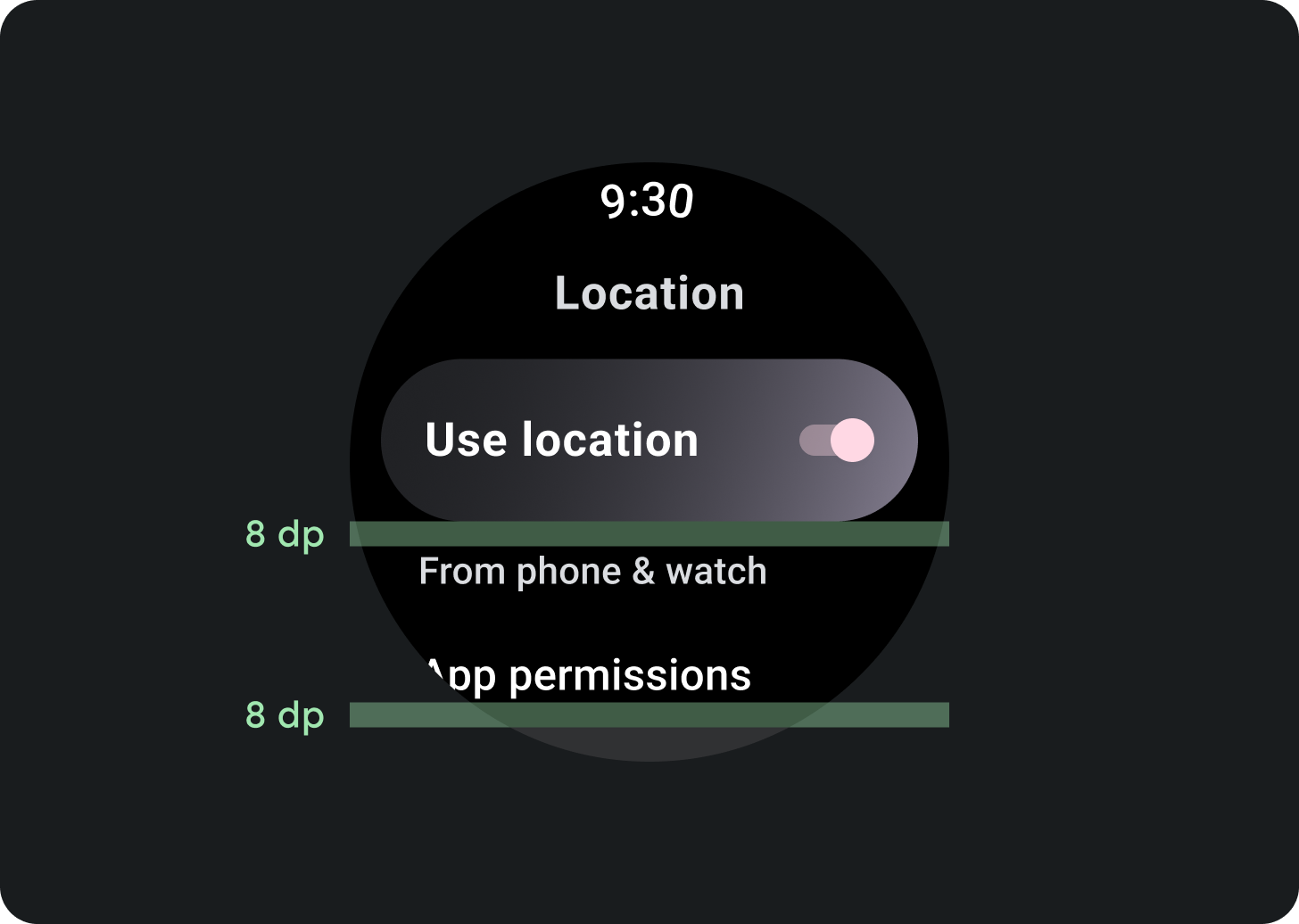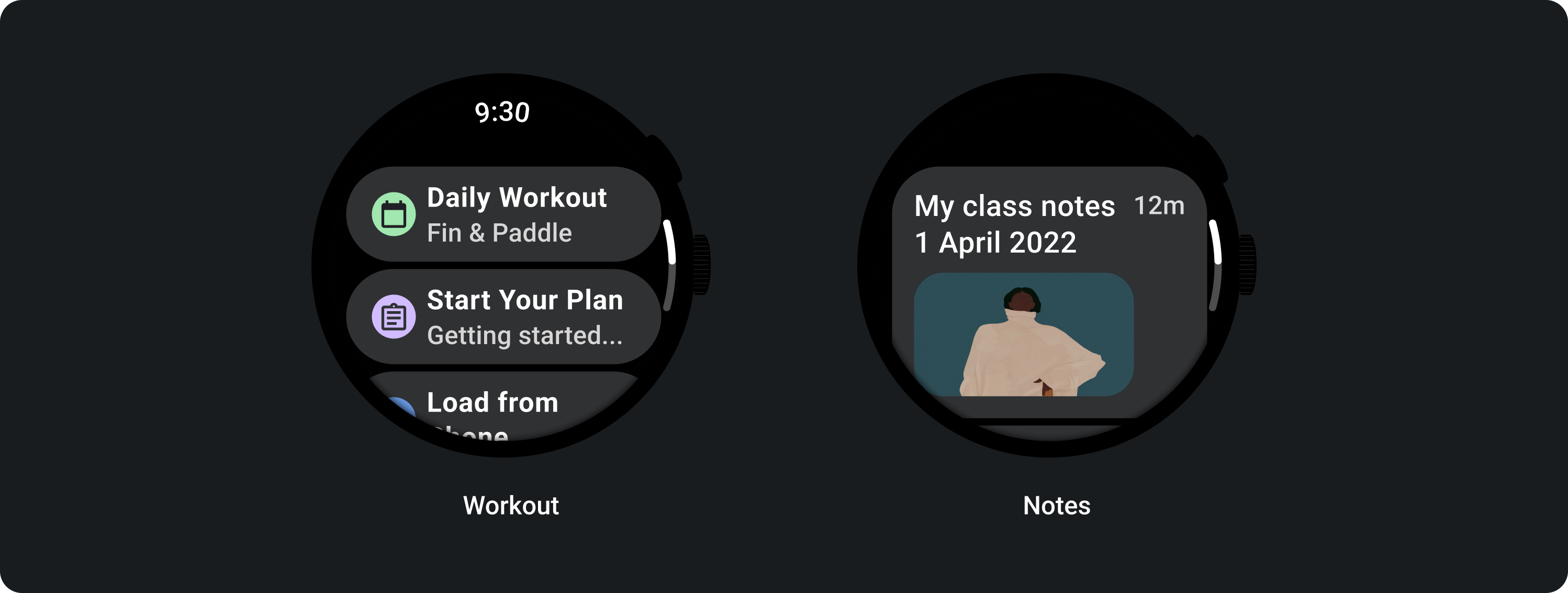 Lists can contain items of fixed or variable height. List content should have margin enough to accommodate for circular screens.