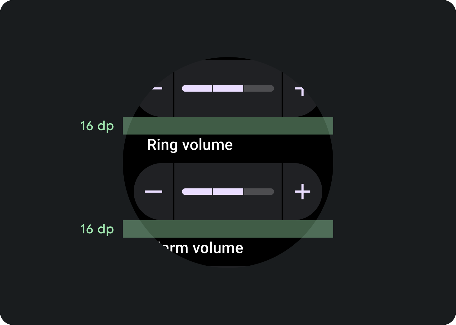Padding between top, middle and bottom section should be set to 16 dp.