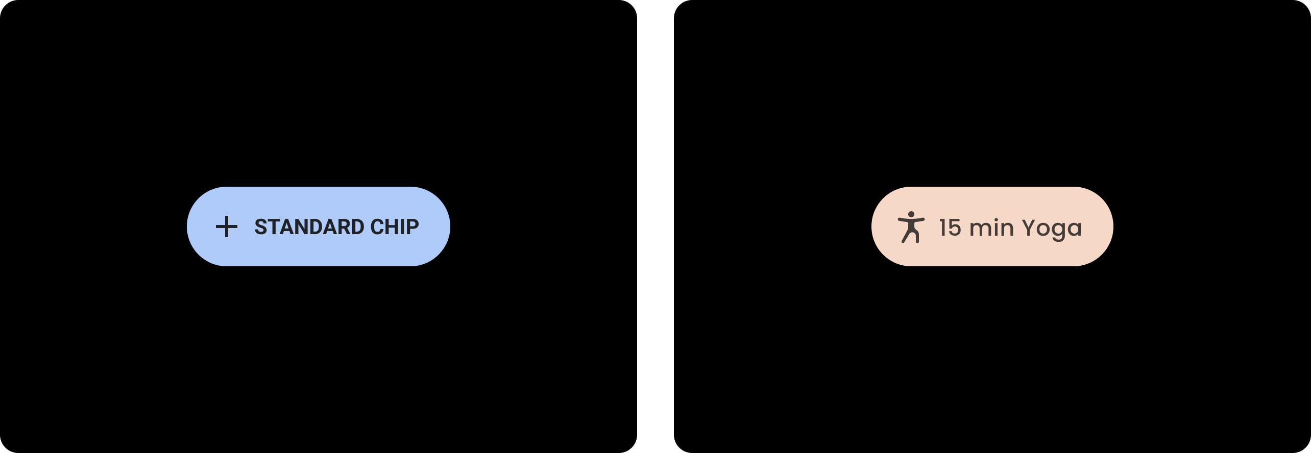 A contained chip is assigned values for a specific color, shape, and type family. Adjust the default values to suit your app’s style.