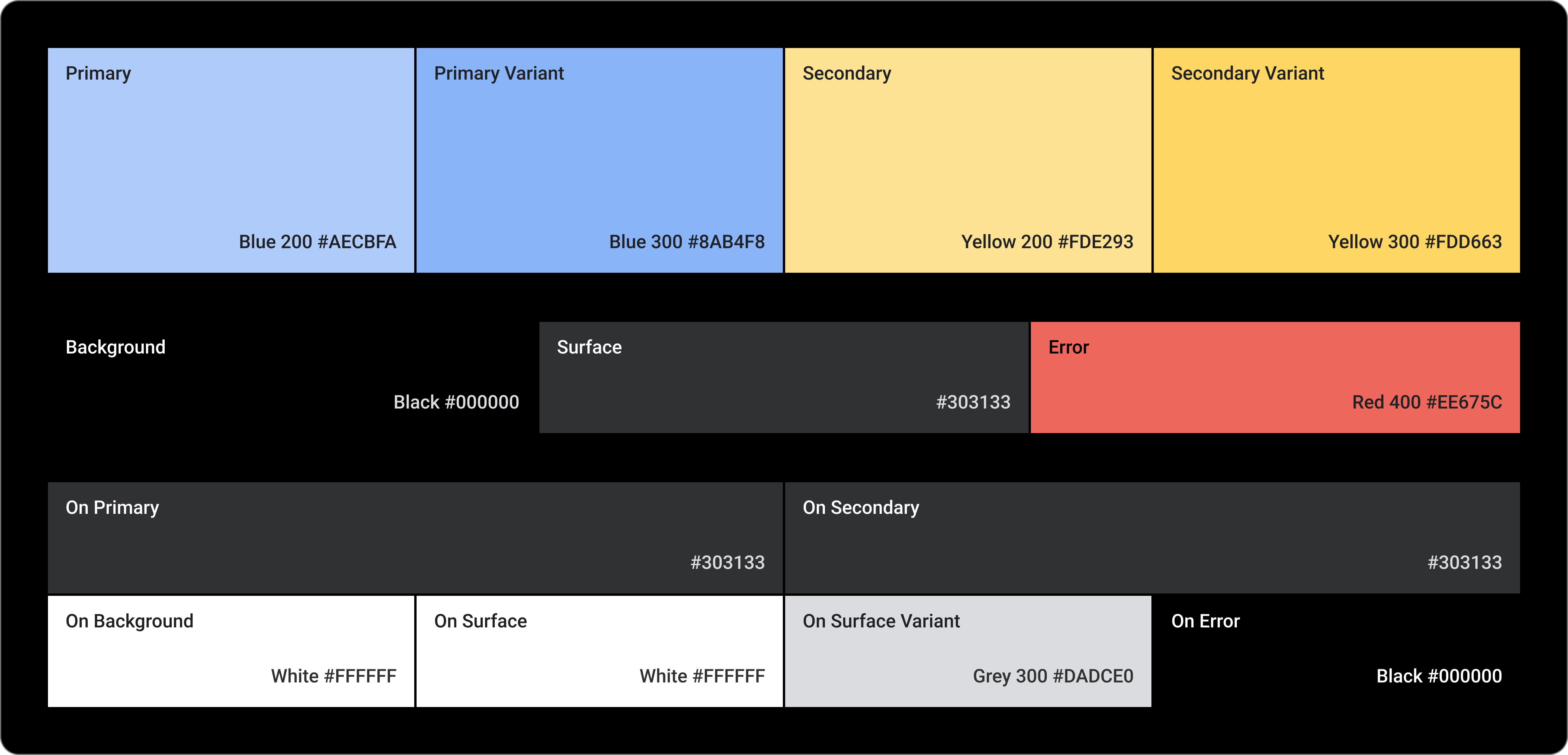 The color system supports setting custom colors for components, text, icons, and surfaces. Set your theme colors for the 13 following categories: