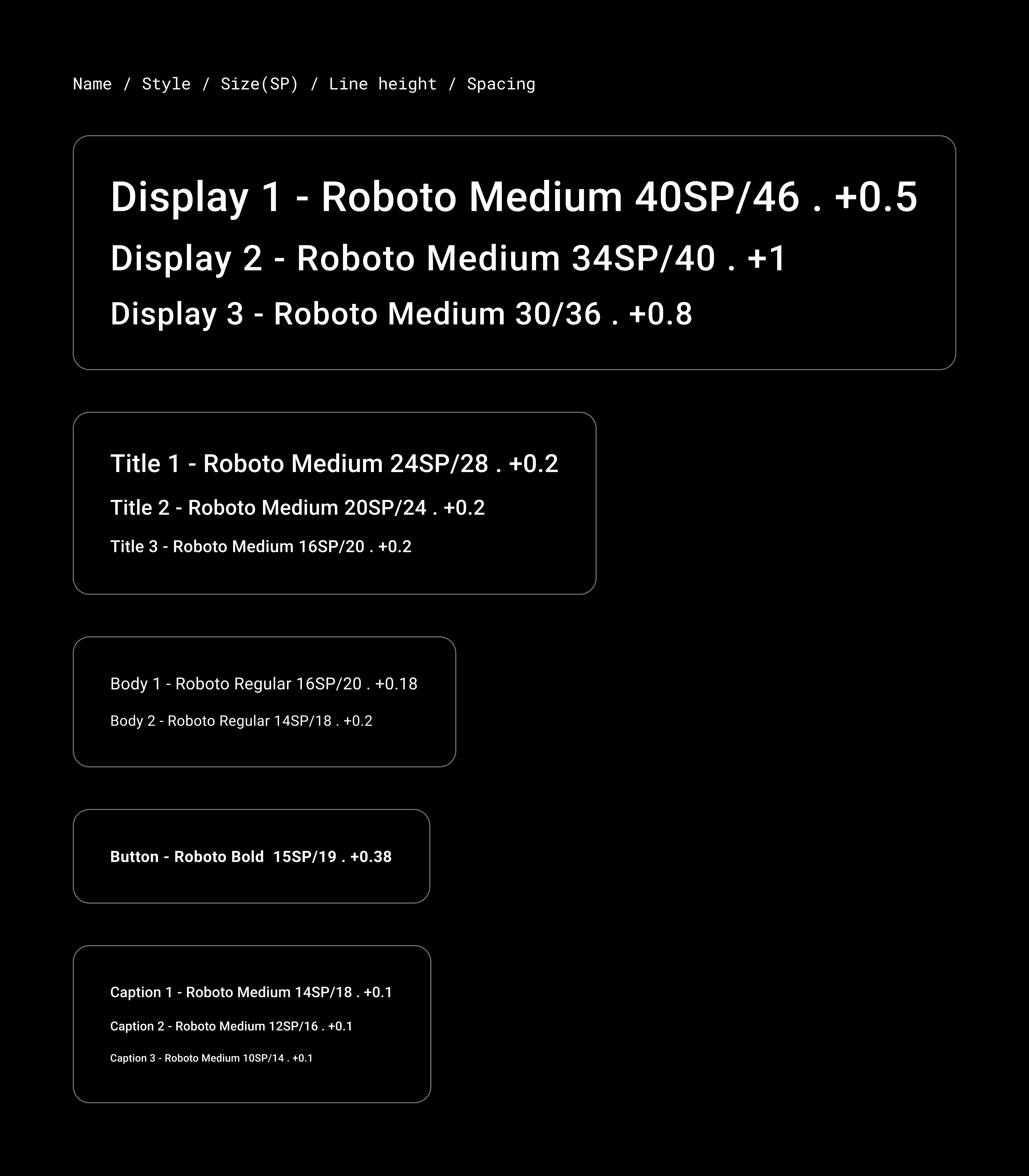 The typography system supports 11 categories that together form the type scale. This type scale determines the various type styles and sizes that appear on-screen, ranging from body copy to button text.