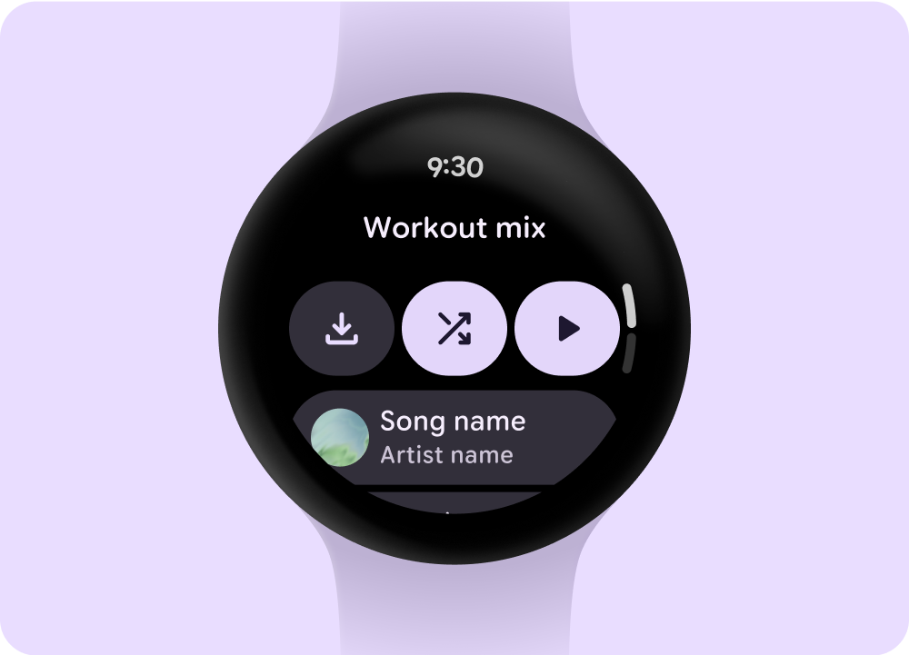 Developers can also create a custom ambient mode layout. This supports ongoing experiences, such as media controls. Because these layouts remain on the screen for long time periods, limit the number of pixels that are illuminated.