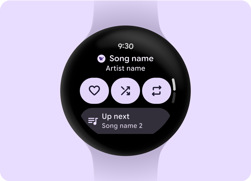 Android users engage with different media types, such as music, podcasts, audiobooks, and radio. Design apps that allow users to quickly access media on their watch. On the watch, prioritize ease and speed of interactions, because users spend much less time interacting with their watch than their phone or tablet.