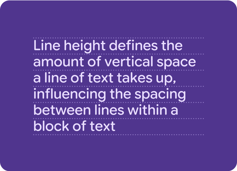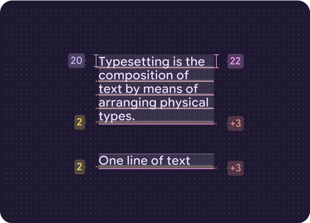 Vertical typesetting relies on padding, bounding boxes, and baselines to ensure text legibility at any size. Take engineering considerations and the conventions of your platform into account when making decisions for typesetting, text resizing, density, and using text in adaptive layouts.