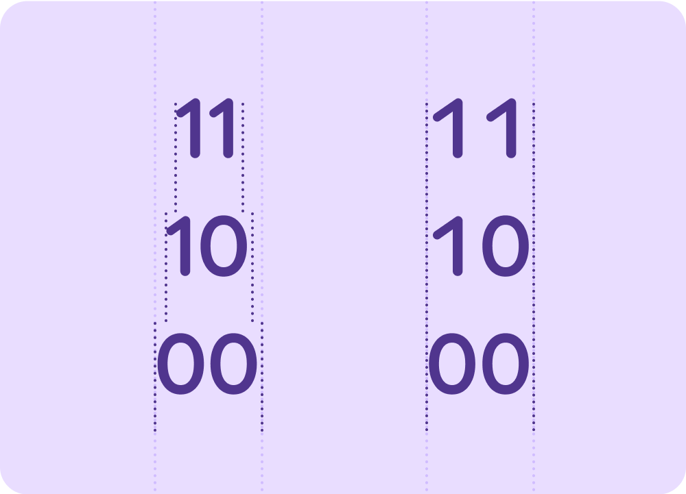 Use monospaced tabular numbers to keep values optically aligned for better scanning and alignment, and to avoid the numbers or adjacent text from jumping around.