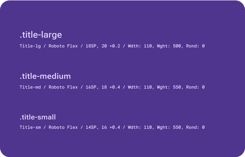 Scaling: All Title type styles scale with user-configurable font size preferences. Scaling on fonts 20sp and up isn't allowed because of the limited screen space on Wear OS devices.