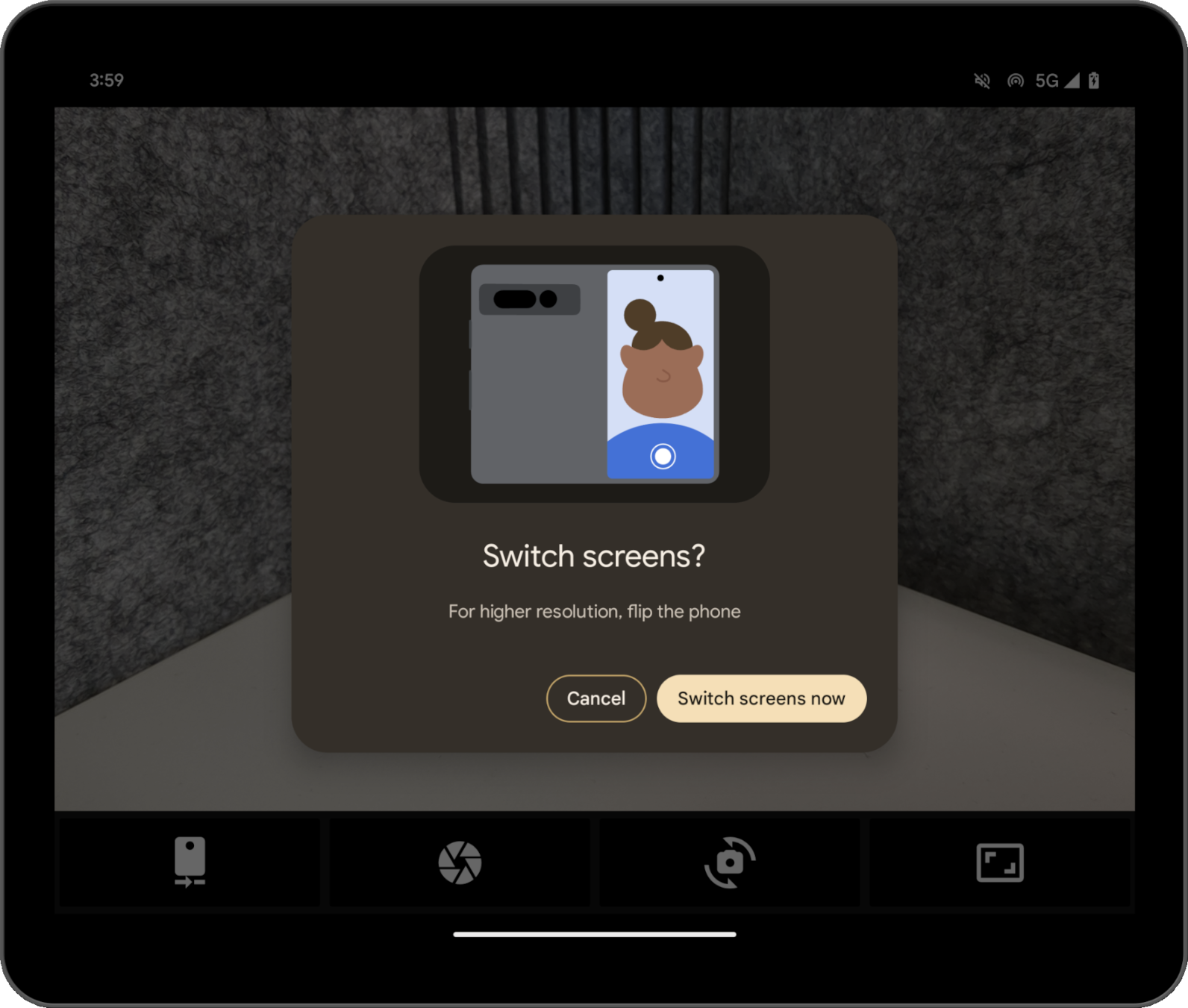 Dual-screen mode lets you show content on both displays of a foldable at the same time. Dual‑screen mode is available on Pixel Fold running Android 14 (API level 34) or higher.