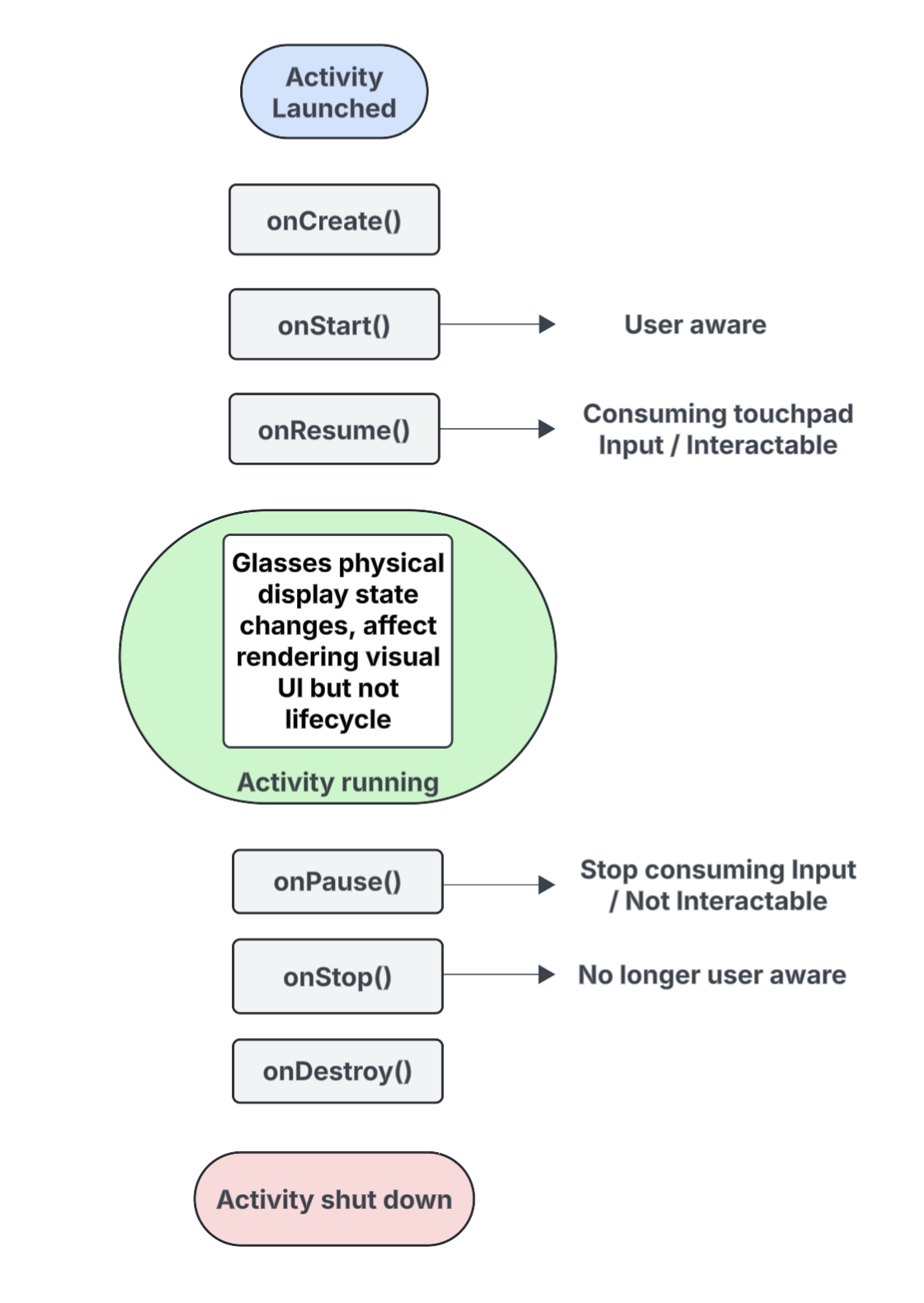 onResume()state means the activity is interactable and can receive touchpad input, or is receiving primary input dispatch.