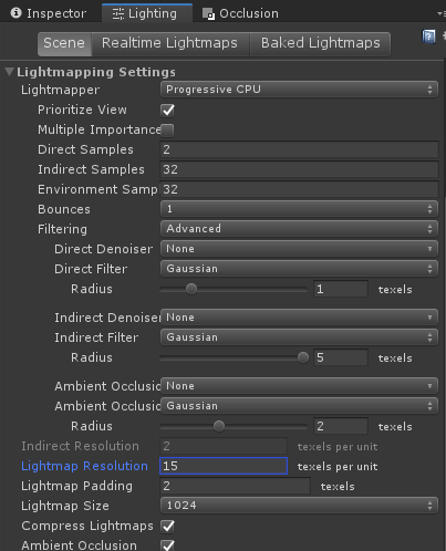 - Progressive CPU: Saves a lot of time because it incrementally creates light maps. If Prioritize View is selected, areas in the Scene view are prioritized. This can decrease the iteration time to set up your Scene’s light.