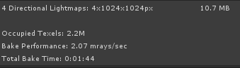 There are many settings in the Lightmapping Settings, along with the size of the maps, that determine how much memory and storage space each map uses. The following sections highlight a few important settings.