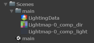When you bake lights, the data saved is based on whatever Scene was active when you started the bake. A folder is generated with the same name as the baked Scene. This folder stores all of the components for the lighting data. If your project loads multiple Scenes at one time, you must bake the lights for each Scene. If you adjust your Scene, you must re-bake the lights.