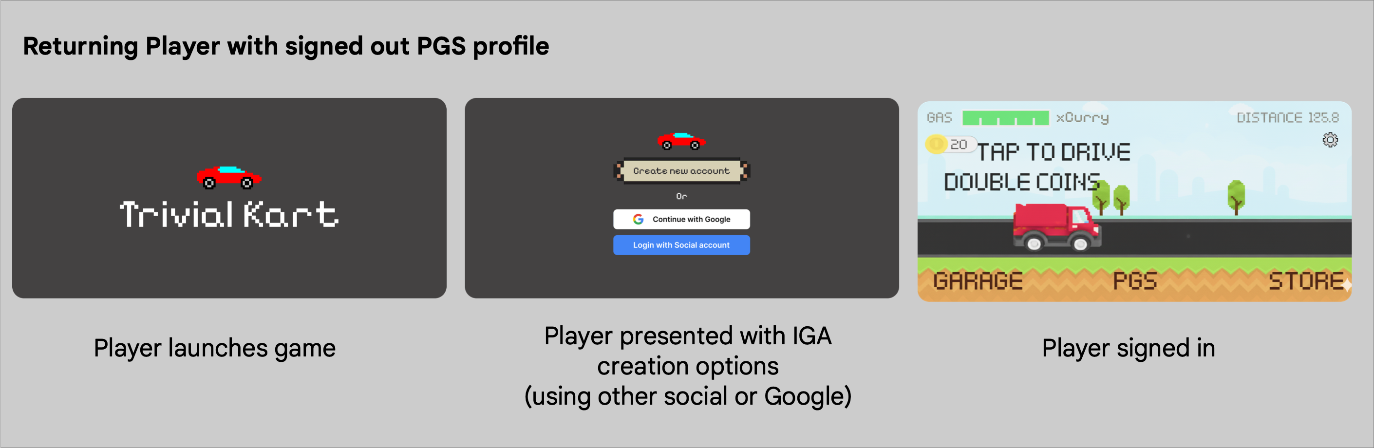 - The game also binds this chosen IGA to the PGS Player ID, marking it as the last played IGA for seamless restore.