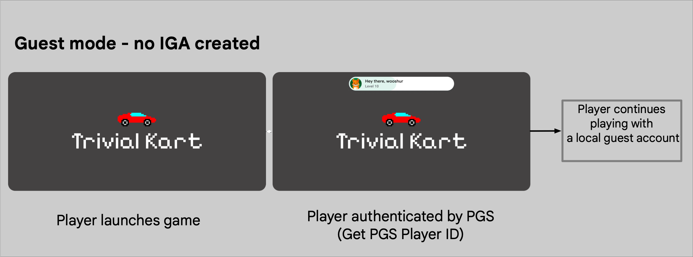 - Independence: Players can sign in to Play Games Services (Platform Identity) to earn achievements while signed in to any specific IGA (for example, a guest account or a specific SiWG account).