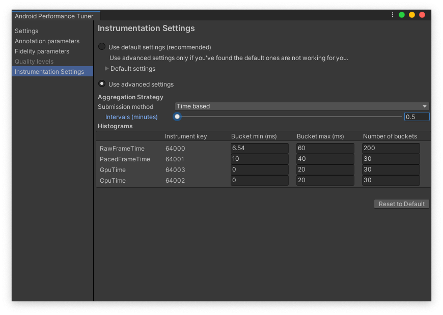- Select the Instrumentation Settings tab and click Use advanced settings.