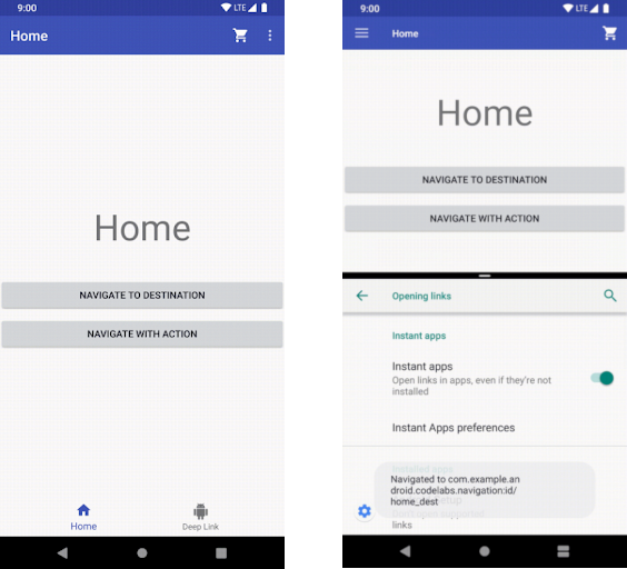 Figure 2. The bottom nav bar is replaced with a nav drawer when vertical space is limited.