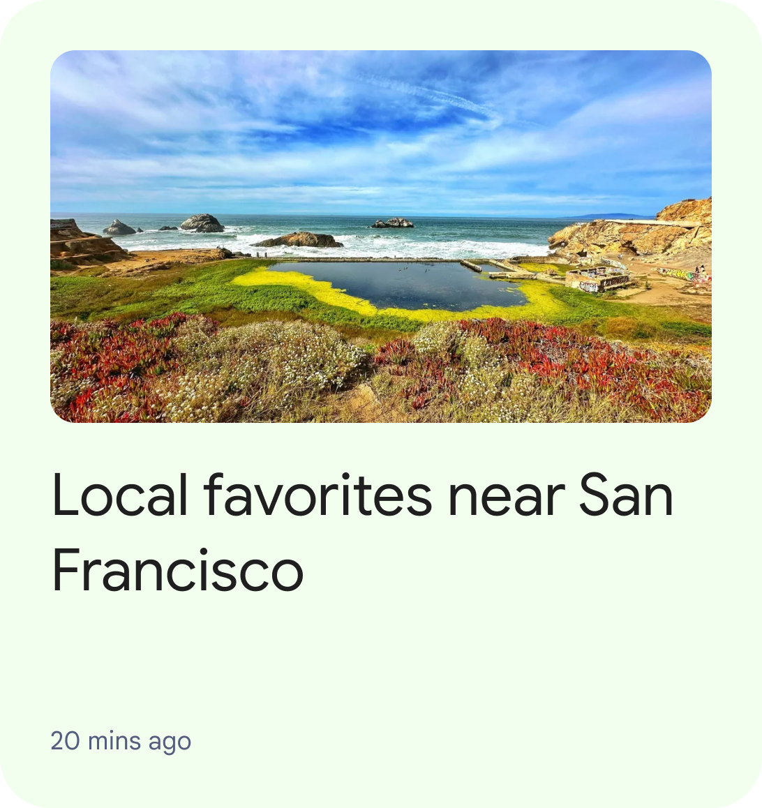 Figure 6. UI showing a single ArticleEntity within a Continuation cluster. RestaurantReservationEntity: RestaurantReservationEntity represents a reservation for a restaurant or cafe and helps users track upcoming or ongoing restaurant reservations.