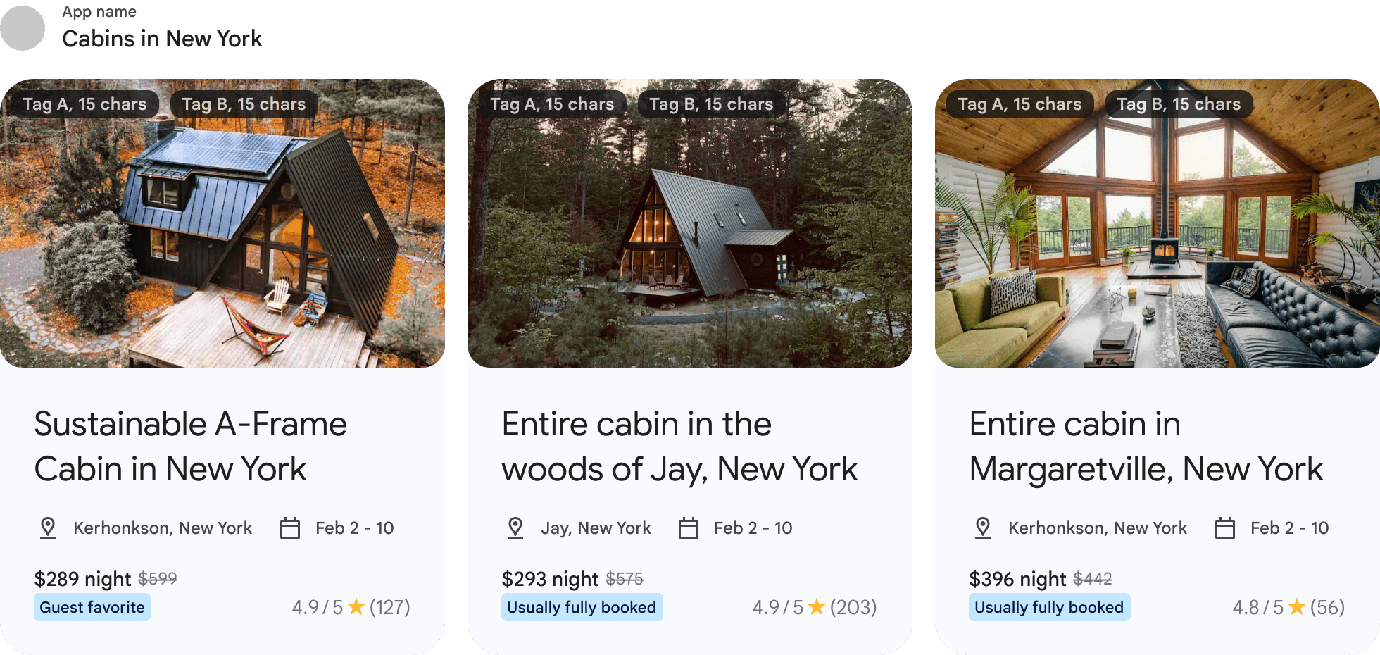 Recommendation clusters show personalized travel & event suggestions from an individual developer partner. These recommendations can be personalized to the user or generalized (for example, trending items). Use these to surface articles, events, lodging, or places of interest recommendations.