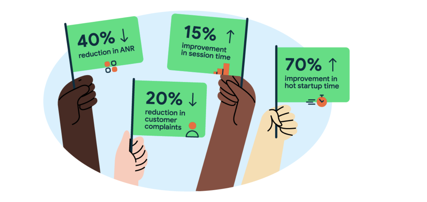 - 20% reduction in user feedback with respect to app slowness, crashes and ANRs. This directly translated into improved session time of users by 15%