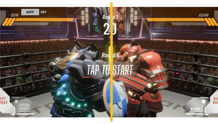 In the previous figures 3 and 4, the same view of the robot can be seen side by side. If a closer look is taken, the graphics settings adjusted by using ADPF is seen. Notice the floor of the ring, the shoulder of the robot, the ropes of the ring and the crowd? All of them seem to be at a slightly lower quality, which was done by using ADPF.