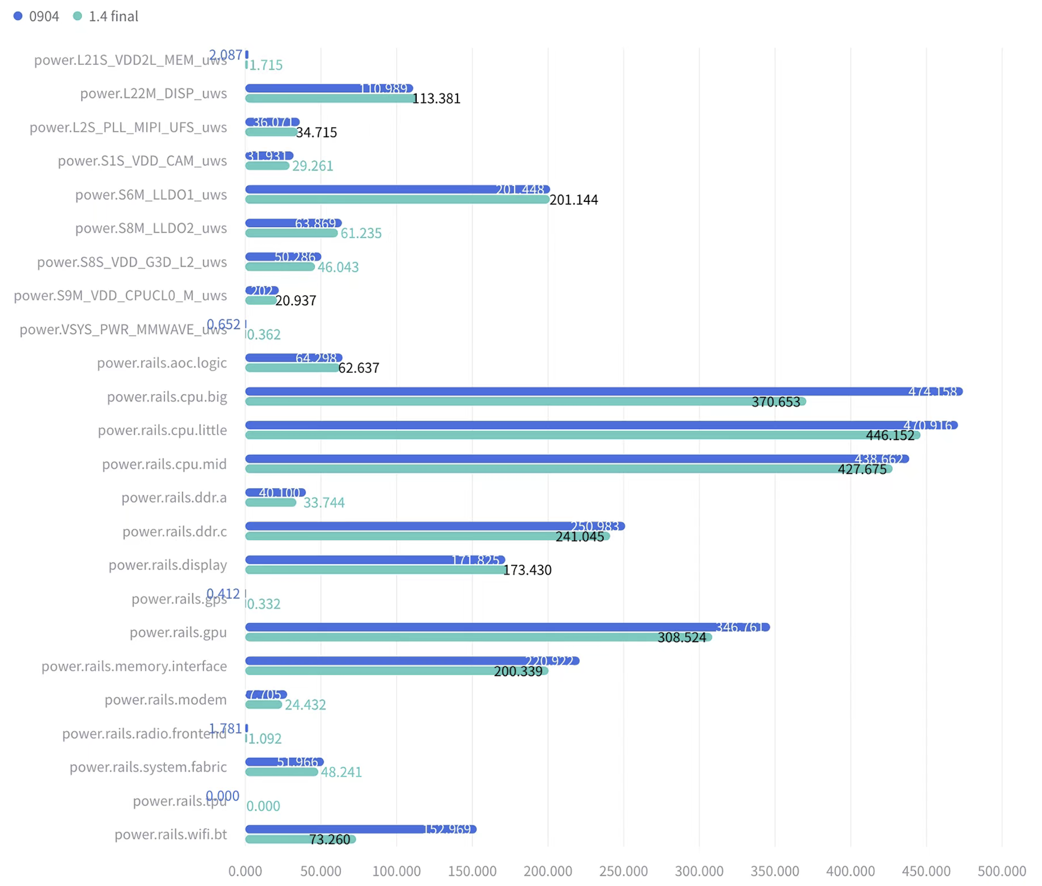 | power.rail.cpu.mid | High | 30 | Low | 470.916mW | 14.60% |