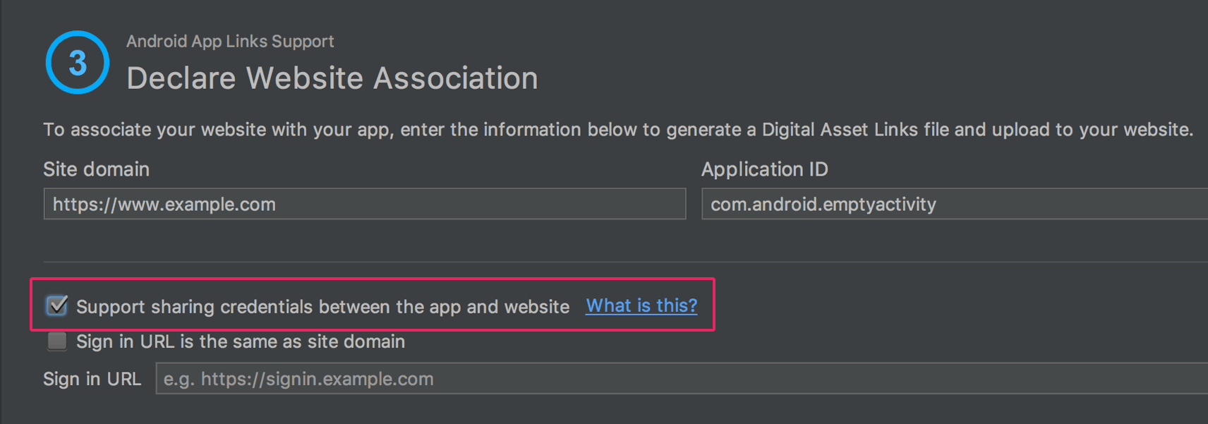 Create a Digital Asset Links file with the appropriate object entry to support Google Smart Lock, and add the corresponding
