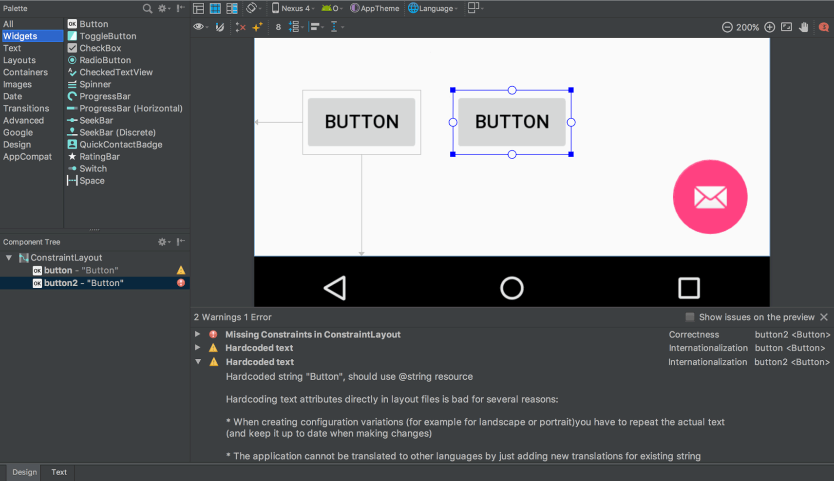 - New support to create groups: In the toolbar, select Guidelines > Add Group (requires ConstraintLayout 1.1.0 beta 2 or higher)