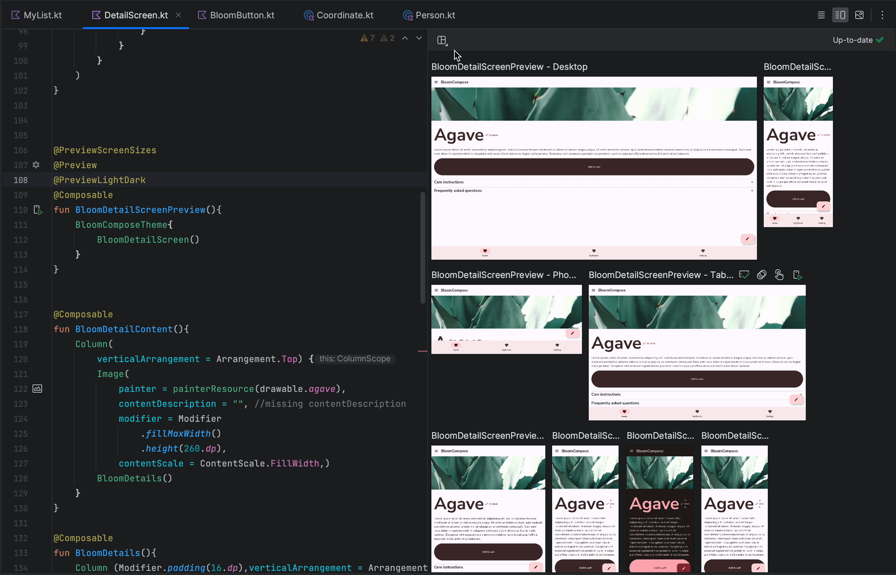 templates: @PreviewScreenSizes, @PreviewFontScales, @PreviewLightDark,
