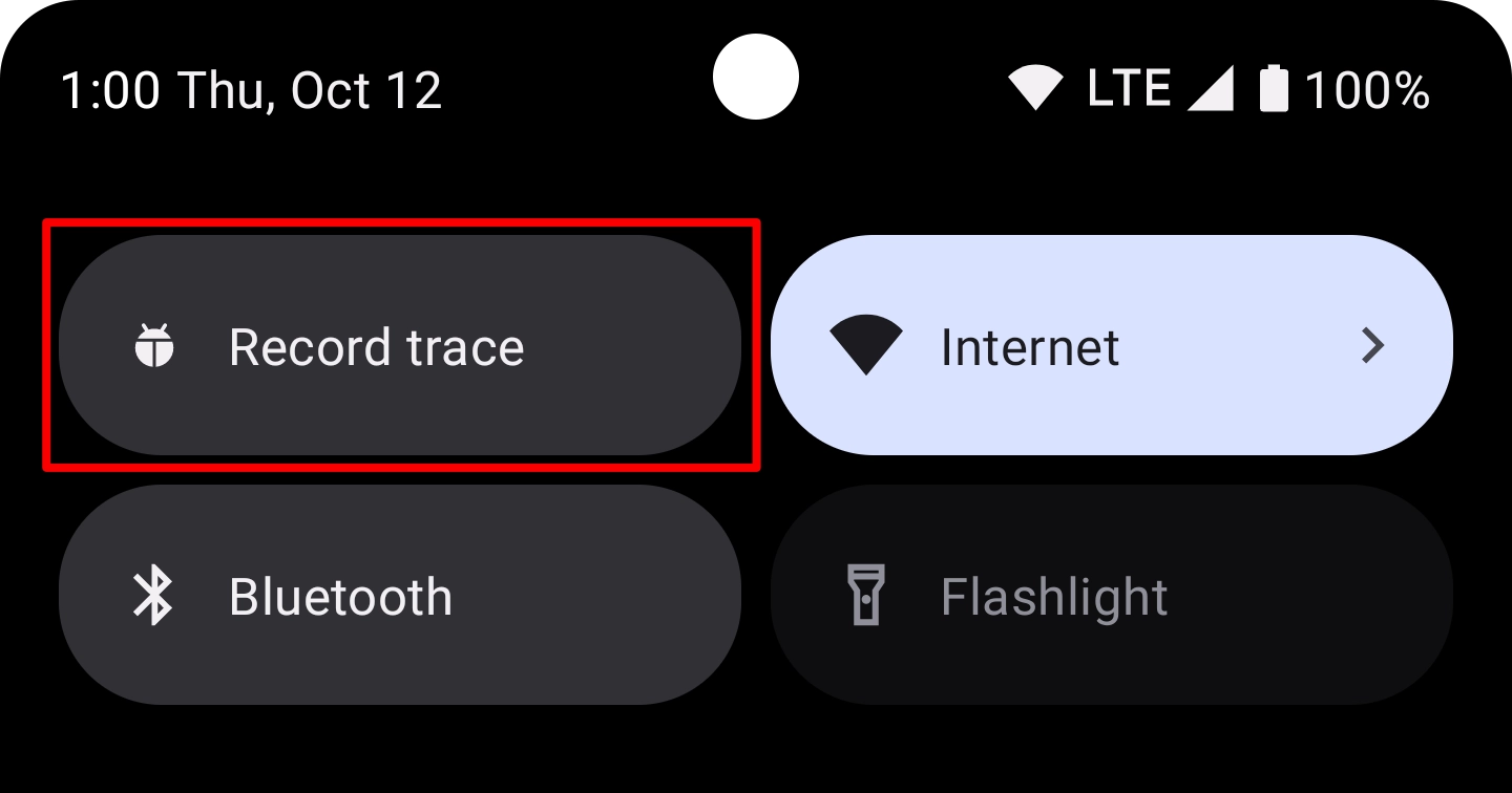 To record a system trace using the Quick Settings panel, complete the following steps: