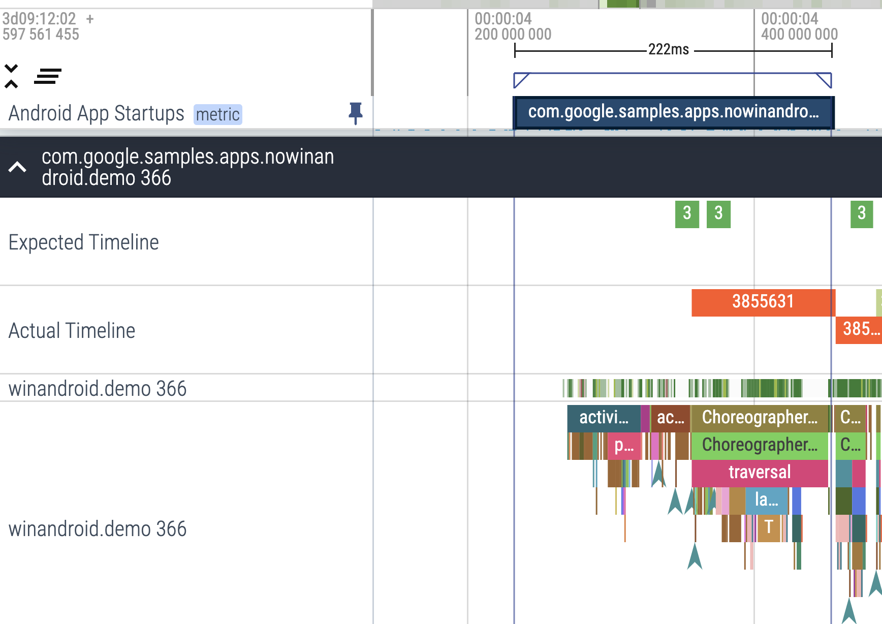 Figure 4.The Android App Startups derived metric slice next to the main thread of the app.