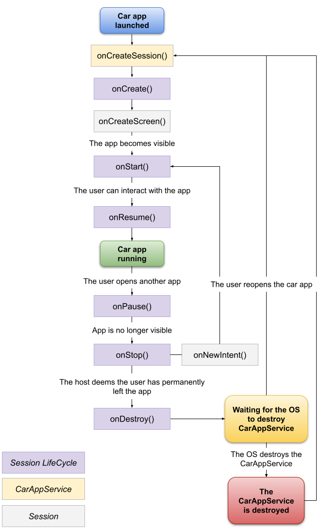 CarAppService, Session, and Screen lifecycles