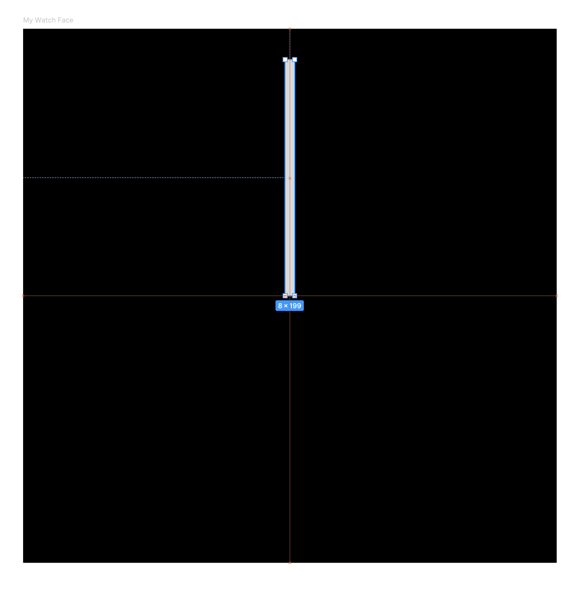 Verify that, when showing the beginning of a new minute, the rectangle is horizontally centered and that its bottom edge sits on the center of the watch face, just as a real clock hand would be. By default, Figma enables Snap to Geometry, which shows red guidelines to help you with this rectangle alignment: